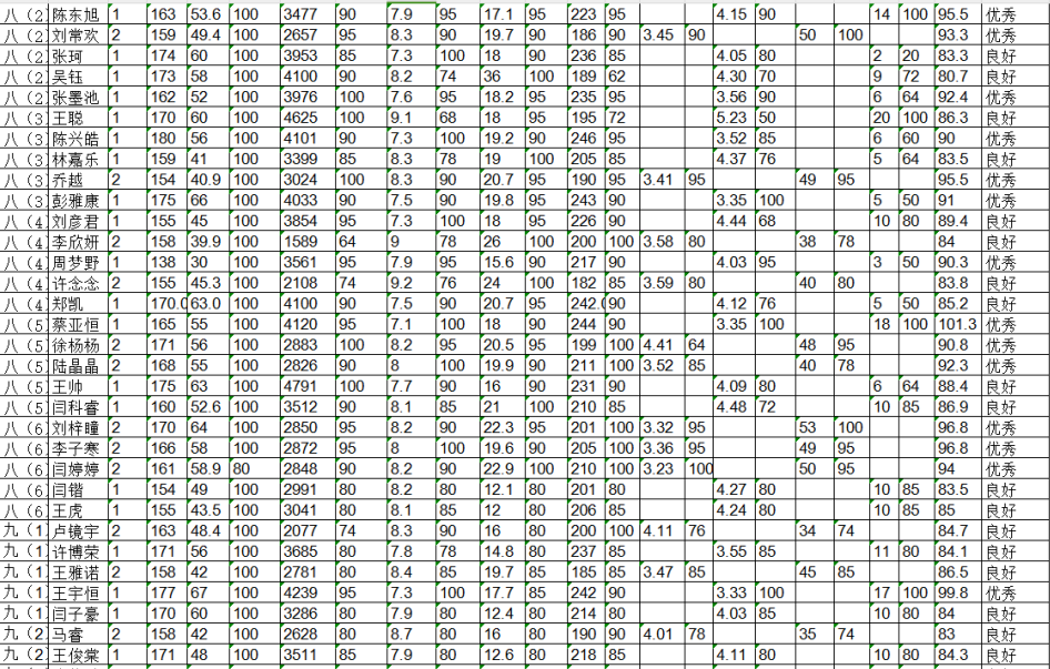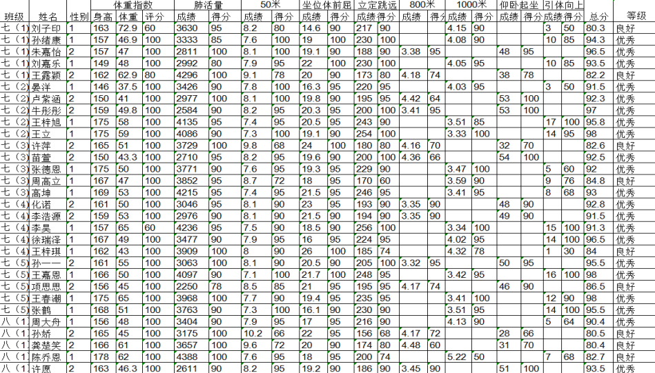 王楼初级中学2024-2025学年度第二学期三好学生体测成绩及各分项成绩公示